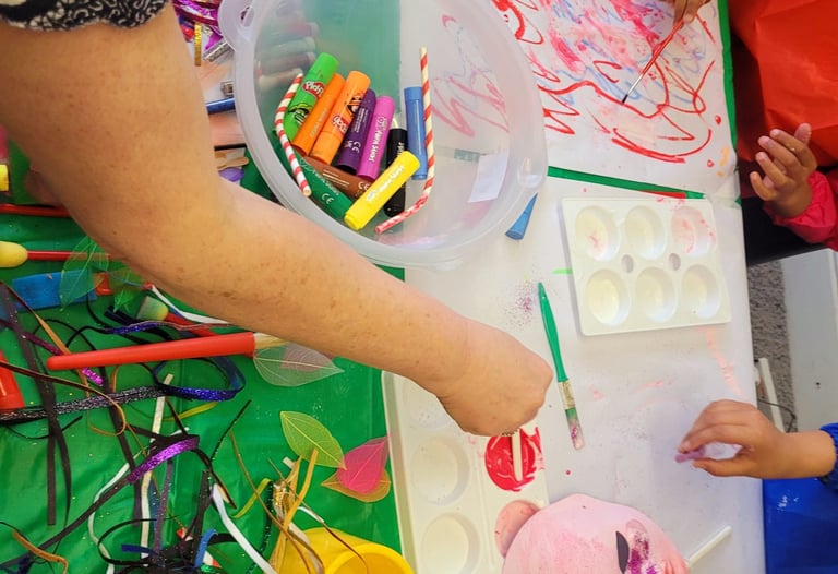 We offer tailored group workshops for adults, designed to support personal growth and emotional well-being through creative expression and exploration. In collaboration with my colleague, we deliver bespoke wellbeing workshops in the community, providing a safe and supportive environment where participants can connect with themselves and others. Our workshops offer adults a unique opportunity to explore their emotions, enhance self-awareness, and develop practical coping strategies, all through creative mediums. We facilitate these workshops in a variety of settings, including community centres, workplaces, and other local organisations. To ensure the safety and well-being of all participants, we adhere to strict safeguarding guidelines and have a Designated Safeguarding Lead (DSL) in place. Our approach empowers individuals to achieve personal growth while fostering a sense of connection and support. Contact us for more information on how our workshops can benefit you or your organisation